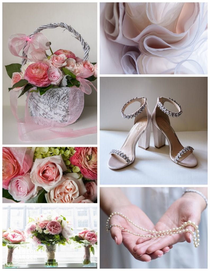 Elise and her besties in their light pink Vera Wang gowns from David’s Bridal, awesome bridal and bridesmaid bouquets by Flowers, Etcetera by Denise.