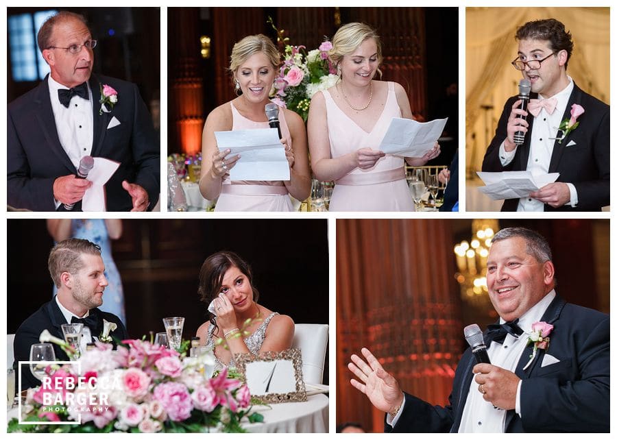 Just a few tears from the bride, during the wedding party toasts at Crystal Tea Room.